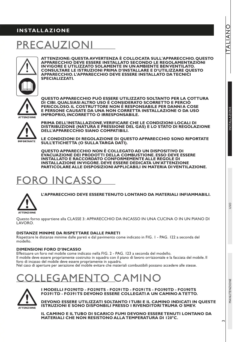 FO391TD - FO391TS DEVONO ESSERE COLLEGATI A UN CAMINO A TETTO.