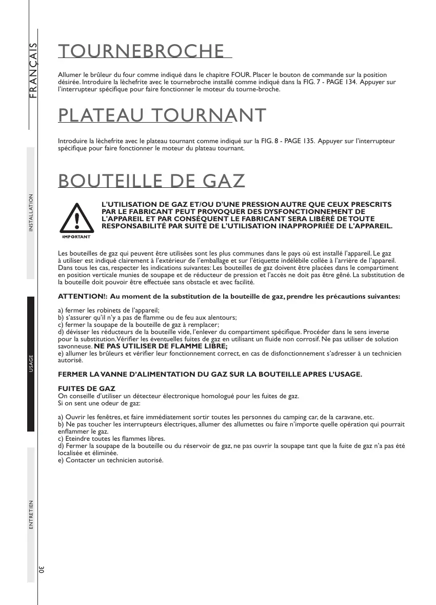 ATTENTION!: Au moment de la substitution de la bouteille de gaz, prendre les précautions suivantes: