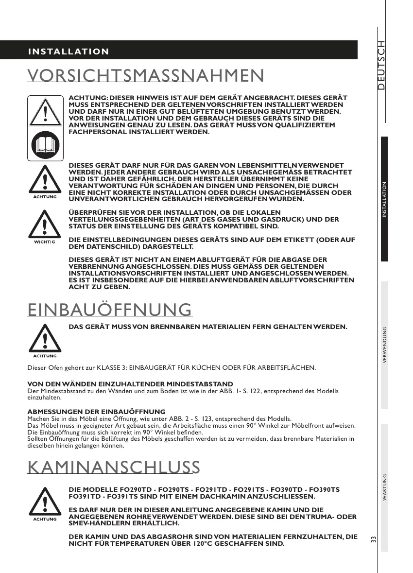 DER KAMIN UND DAS ABGASROHR SIND VON MATERIALIEN FERNZUHALTEN, DIE