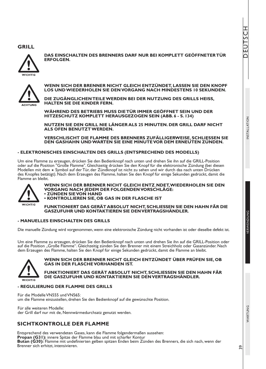 DAS EINSCHALTEN DES BRENNERS DARF NUR BEI KOMPLETT GEÖFFNETER TÜR