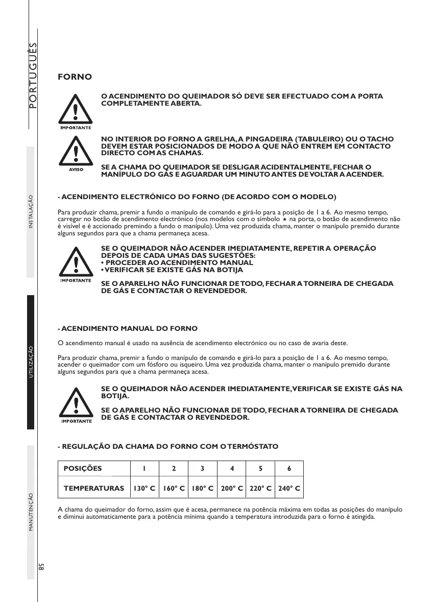 - ACENDIMENTO ELECTRÓNICO DO FORNO (DE ACORDO COM O MODELO)
