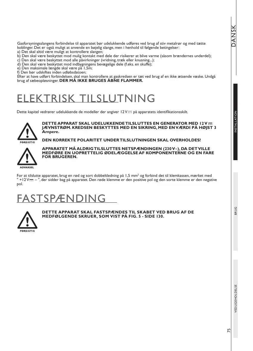 Dette kapitel vedrører udelukkende de modeller der angiver 12 V på apparatets identifikationsskilt.