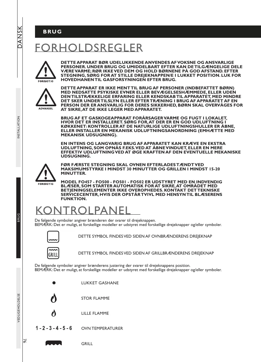 FØR FÆRSTE STEGNING SKAL OVNEN EFTERLADES TÆNDT VED
