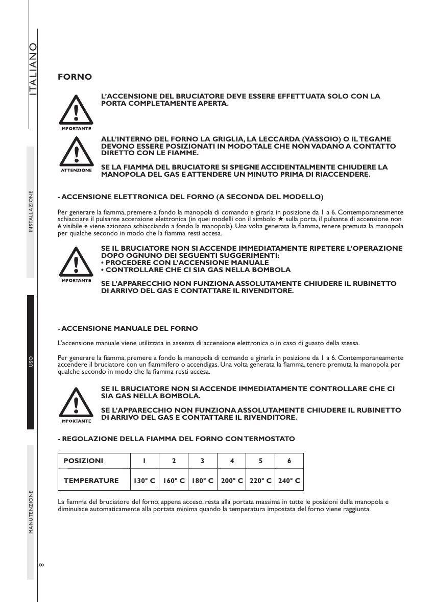 - ACCENSIONE ELETTRONICA DEL FORNO (A SECONDA DEL MODELLO)