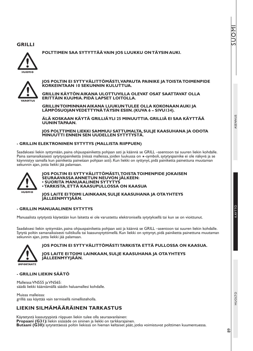 ÄLÄ KOSKAAN KÄYTÄ GRILLIÄ YLI 25 MINUUTTIA. GRILLIÄ EI SAA KÄYTTÄÄ