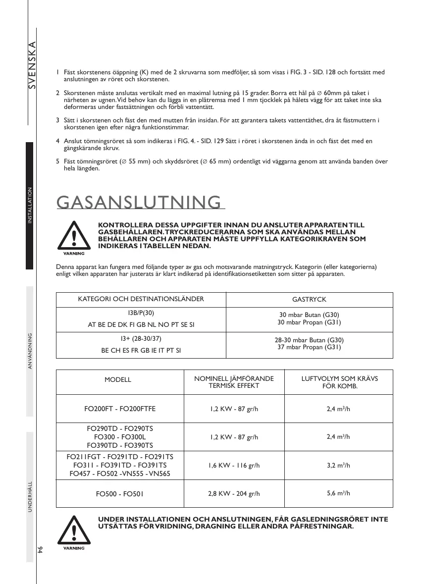 4 Anslut tömningsröret så som indikeras i FIG. 4. - SID. 129 Sätt i röret i skorstenen ända in och fäst det med en