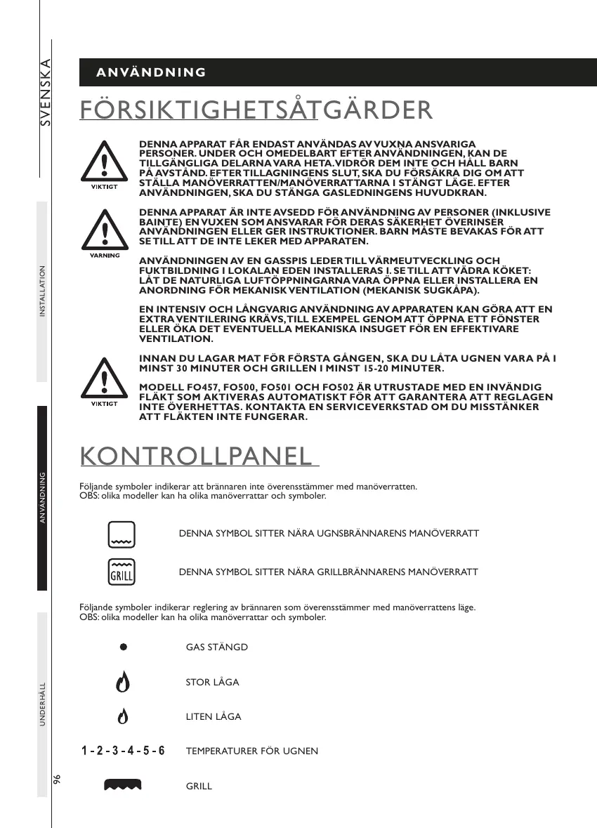 DENNA SYMBOL SITTER NÄRA GRILLBRÄNNARENS MANÖVERRATT