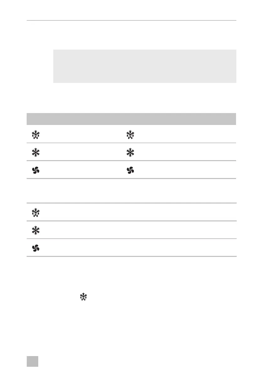 Symbol bliká, aktivace ventilátoru má po rozmrazování prodlevu.