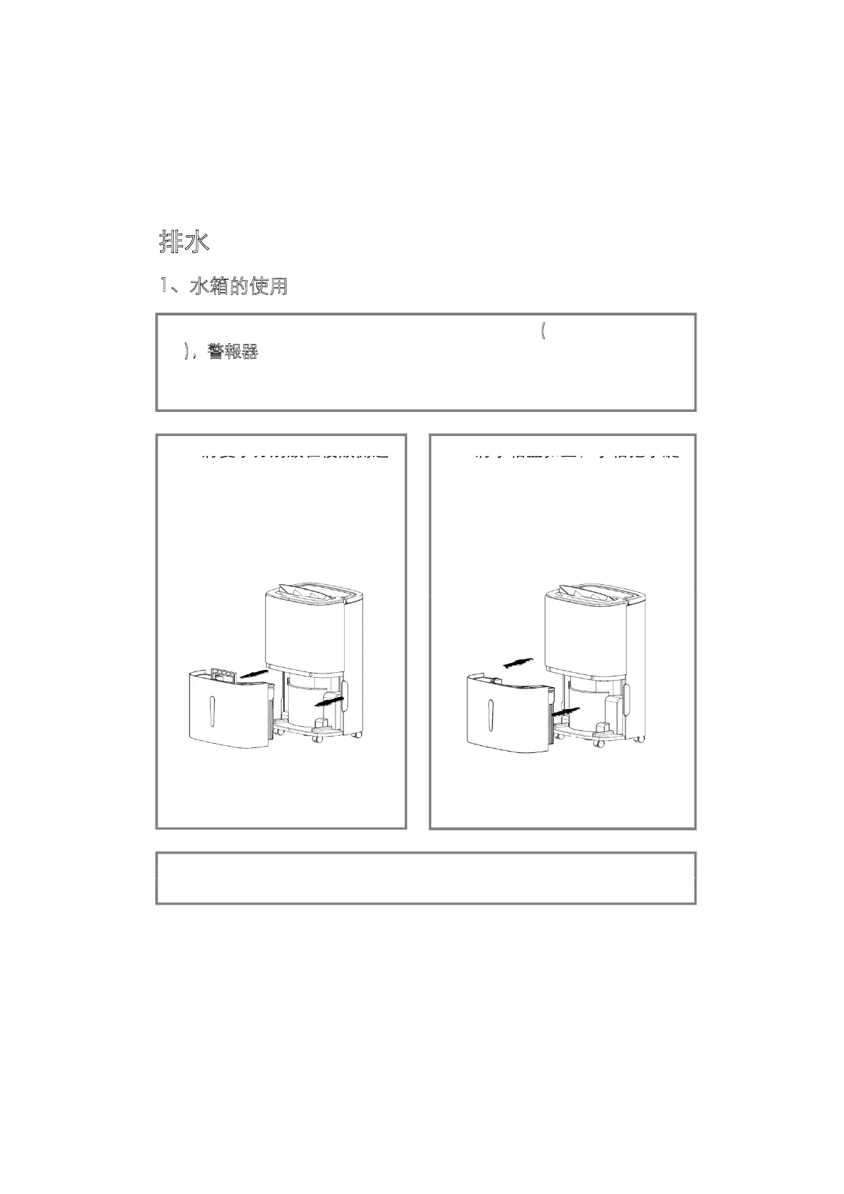 注意:當水箱水滿時請把水箱中的水清空,在把水箱放入機體前,
