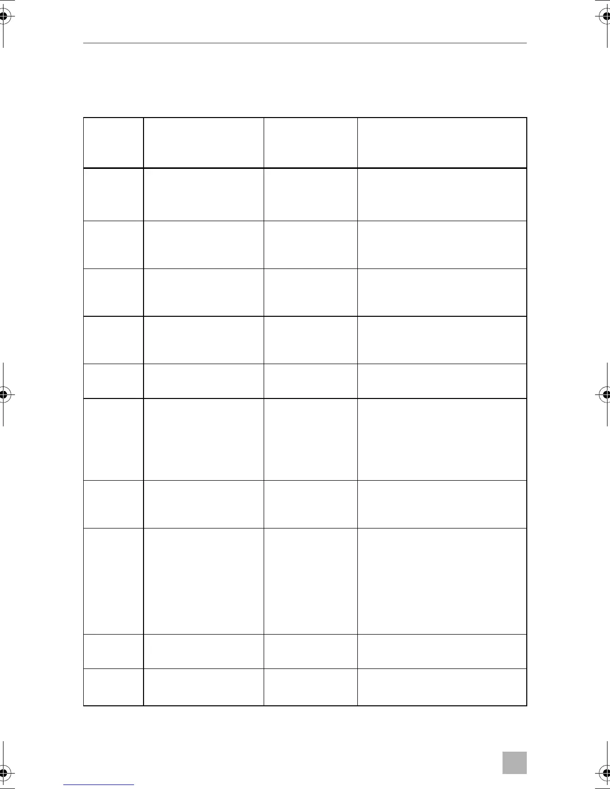 Tableau des paramètres programmables