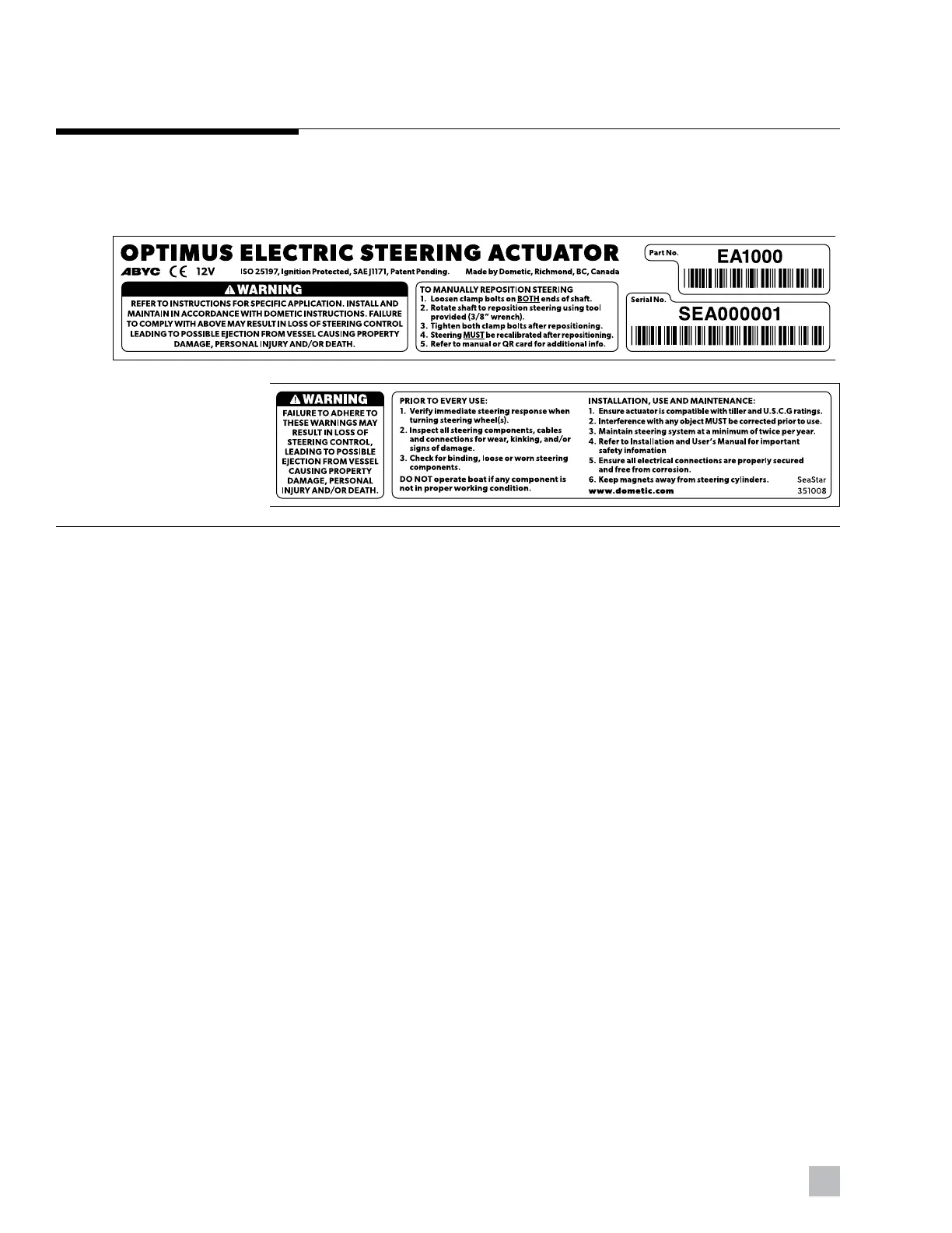 Dometic Optimus EPS - Safety Decal