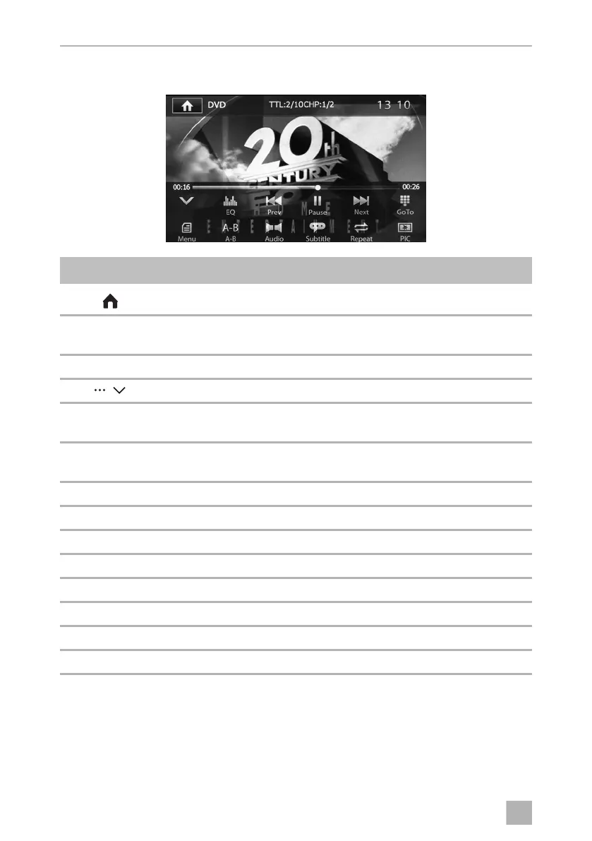Menu Opens the DVD main menu
