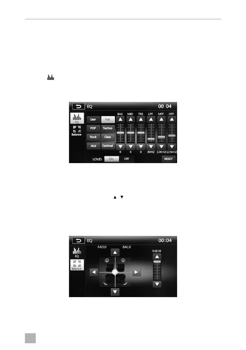➤ Press BALANCE on the display to set the fader/balance.