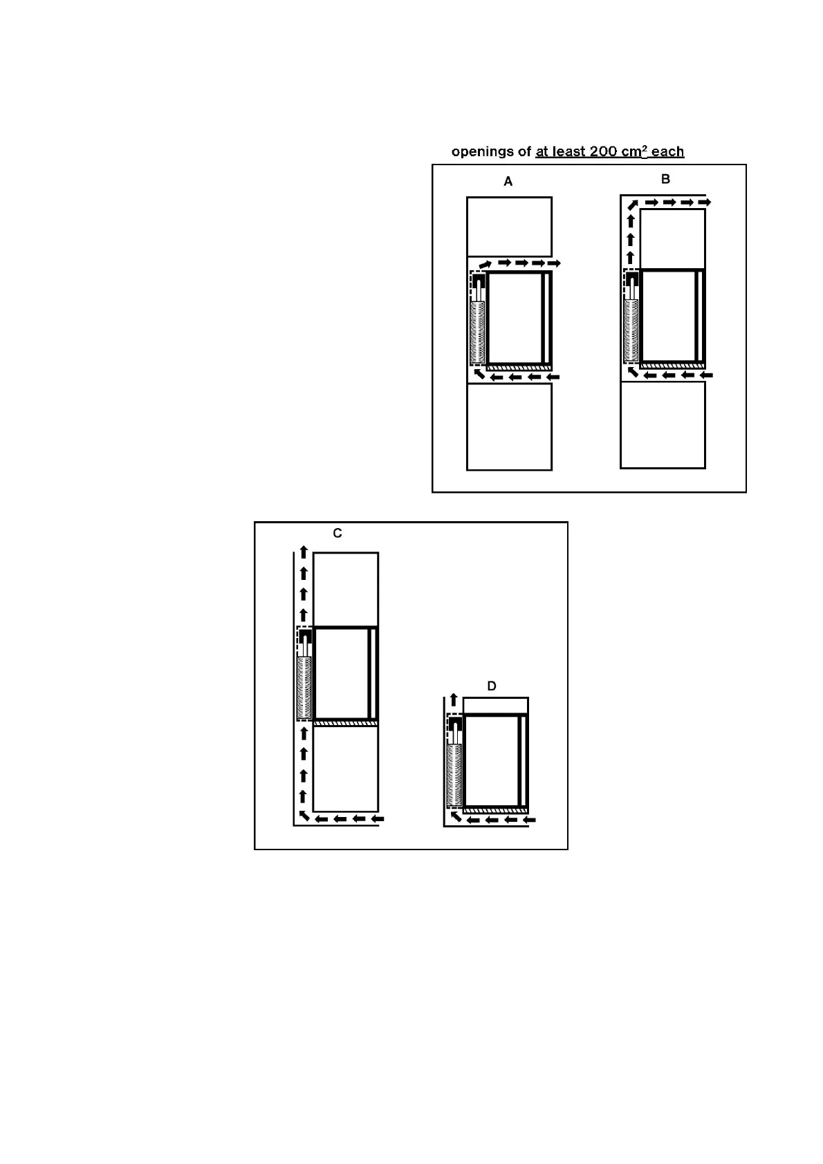 The refrigerator can be fixed to the bottom of the furniture through its fixing feet using screws of an