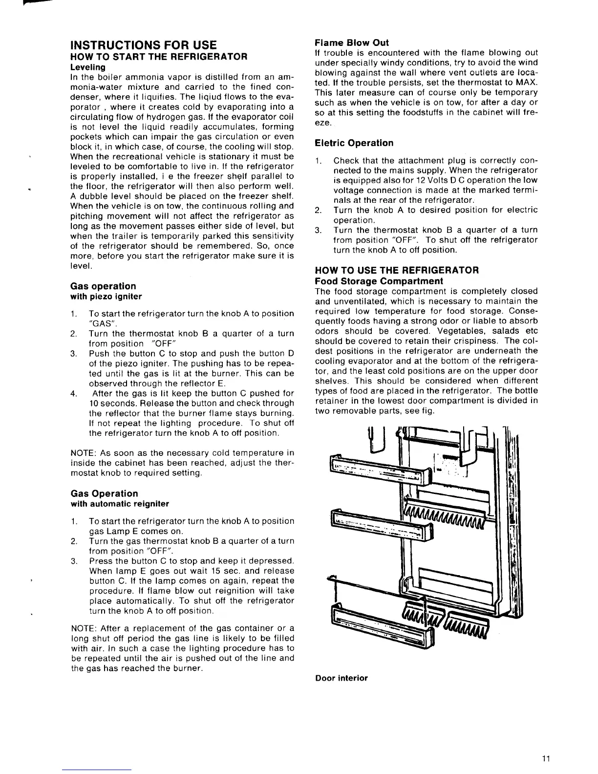 Dometic RM 2301 - INSTRUCTIONS FOR USE; HOW TO START THE REFRIGERATOR; Eletric Operation; HOW TO USE THE REFRIGERATOR