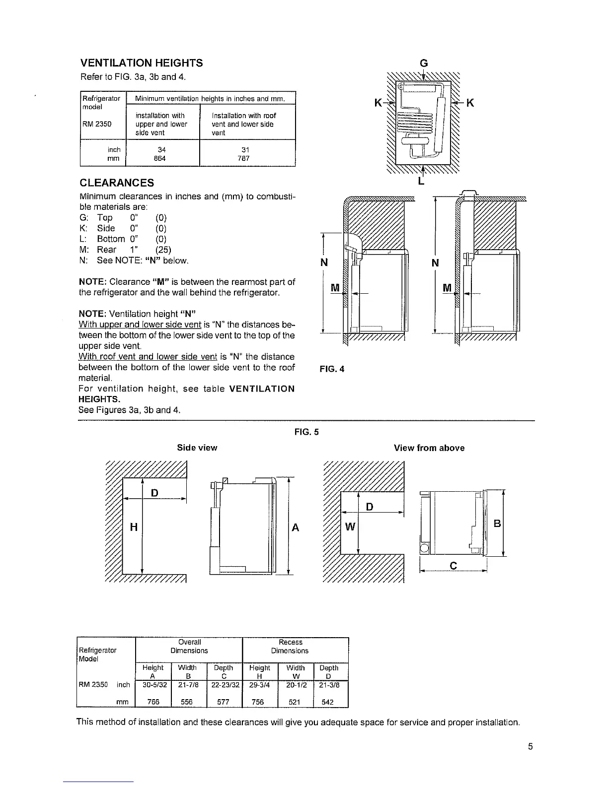 Dometic RM 2350 - Ventilation Heights; Clearances; Side View; View from above