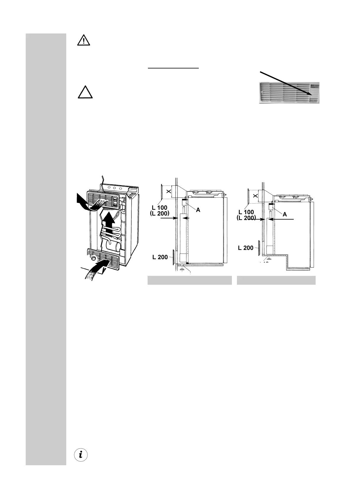 The upper ventilation grille should be positioned as high as possible above