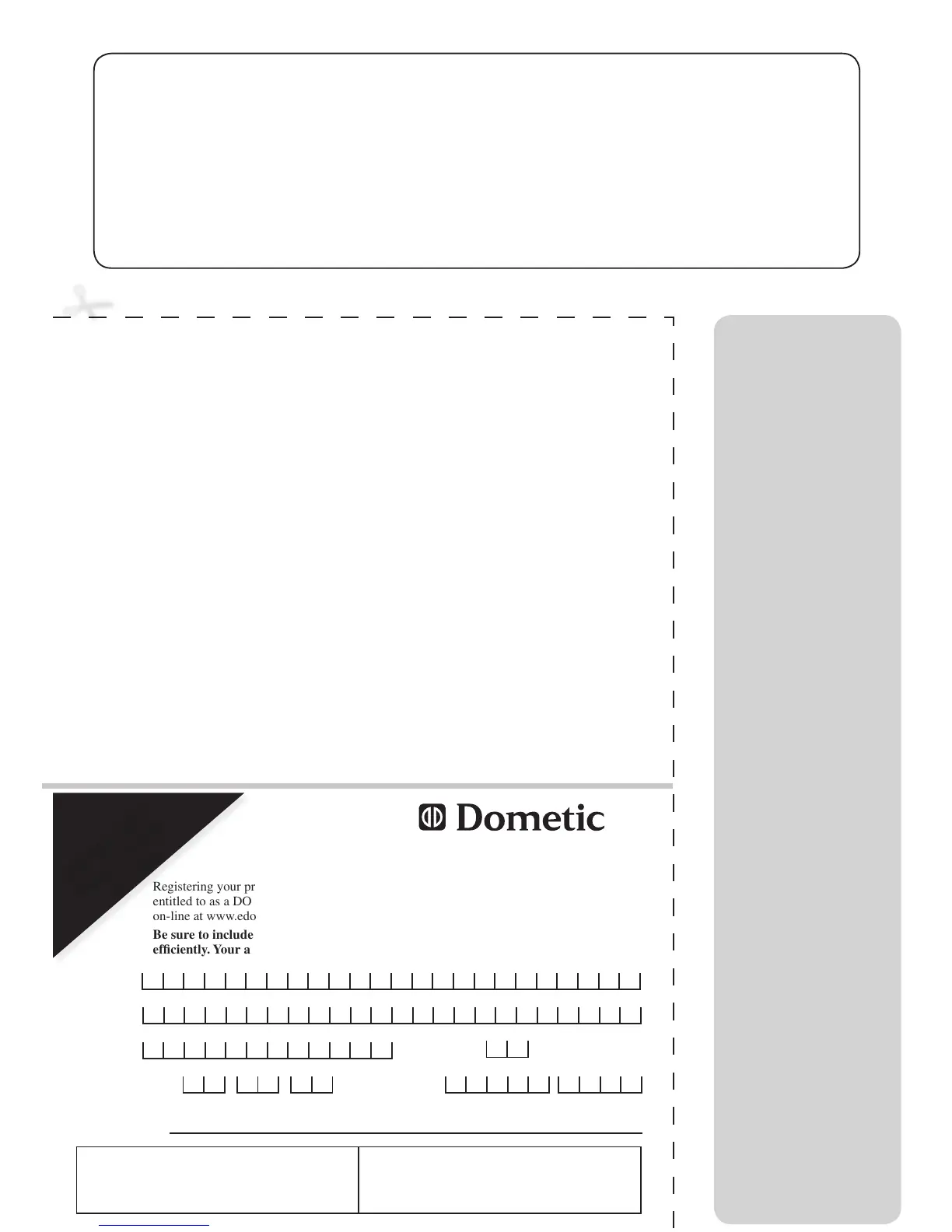 entitled to as a DOMETIC customer. Complete the information below and mail to us or register