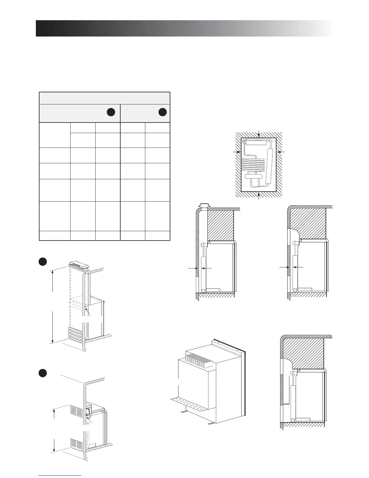 Minimum clearances (in inches) to combustible materials: