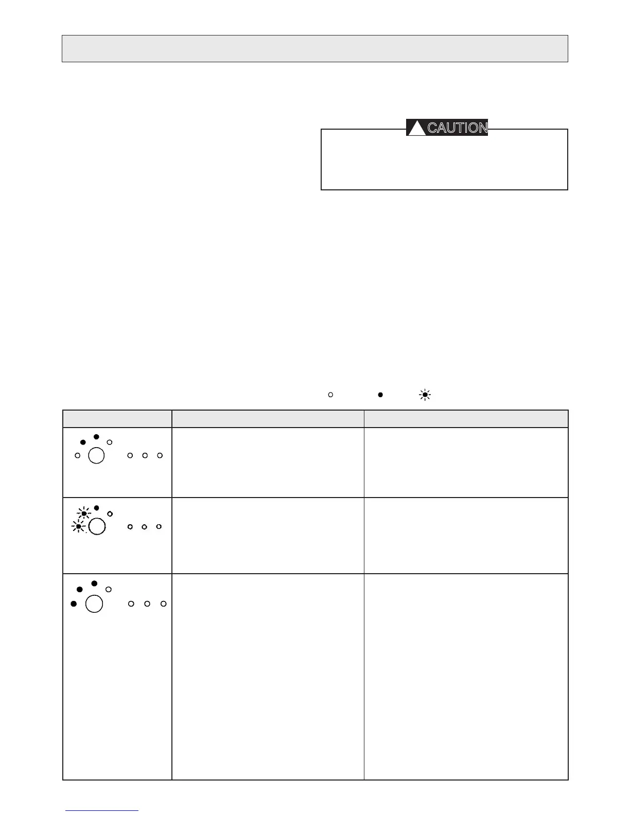 give an indication and stop. The table below gives probable causes of warnings given by the water purier.