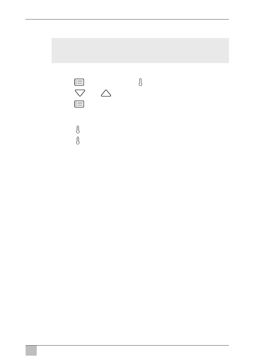 ➤ Tryk på tasten + for at forøge den ønskede temperatur.