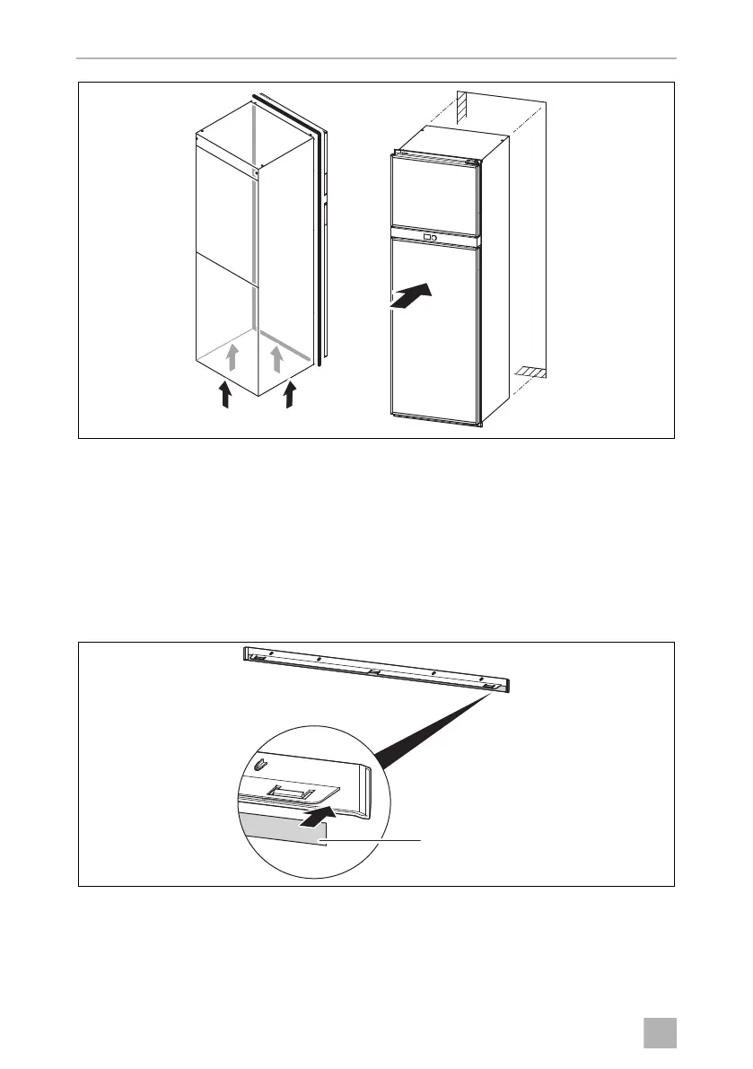 ➤ Push the refrigerator into position (step 2. in fig. 8 and fig. 9). This then seals