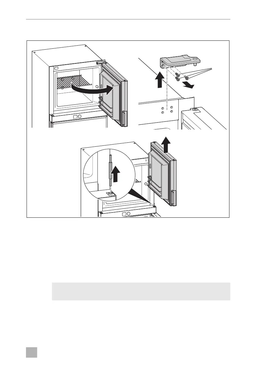 ➤ Support the refrigerator door so that it does not fall off.
