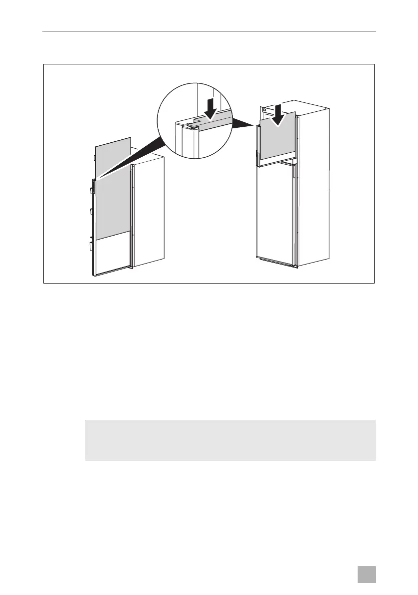 ➤ Push the new panel downwards into the door. Ensure, that the vertical edges fit