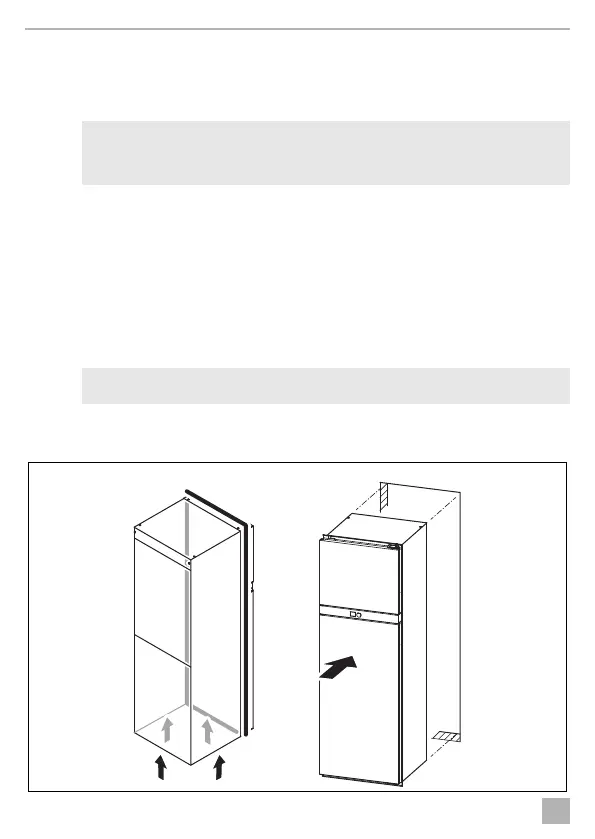 2. Insert the mounting frame into the prepared opening in the outer wall (see chapter “Installing the refrigerator”