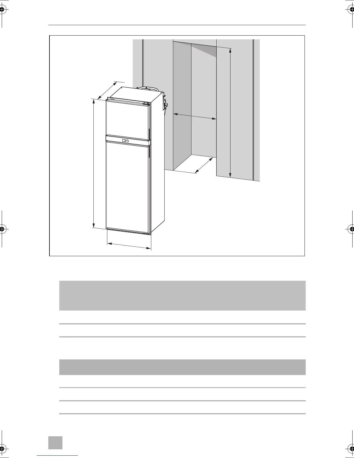 The refrigerator must be installed in a recess so that it stands secure when the