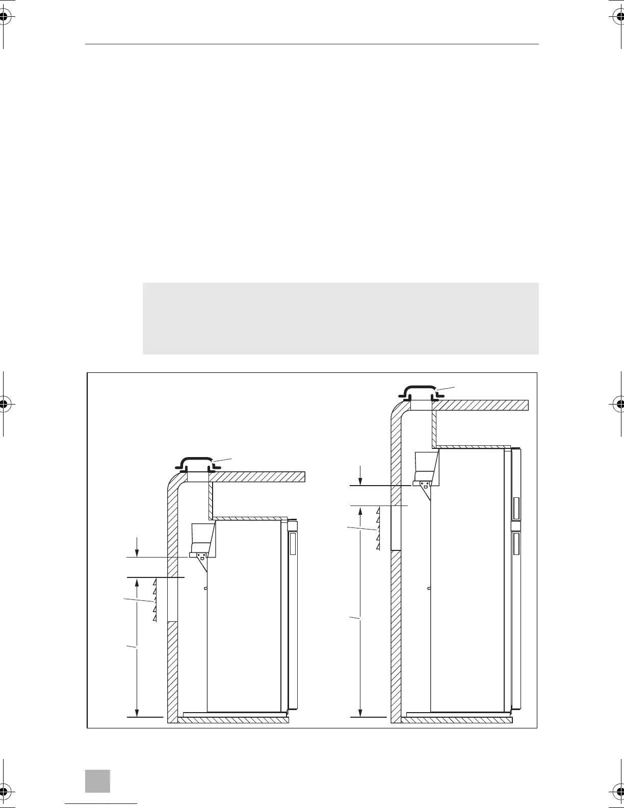 a maximum height (top of vent) of 250 mm below the compressor shelf.