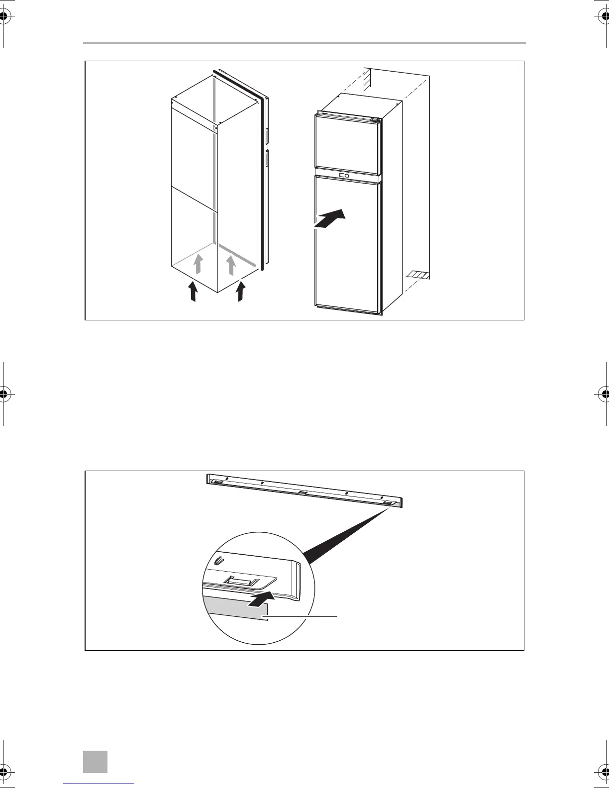 ➤ Push the refrigerator into position (2. in fig. 8 and fig. 9). This then seals the