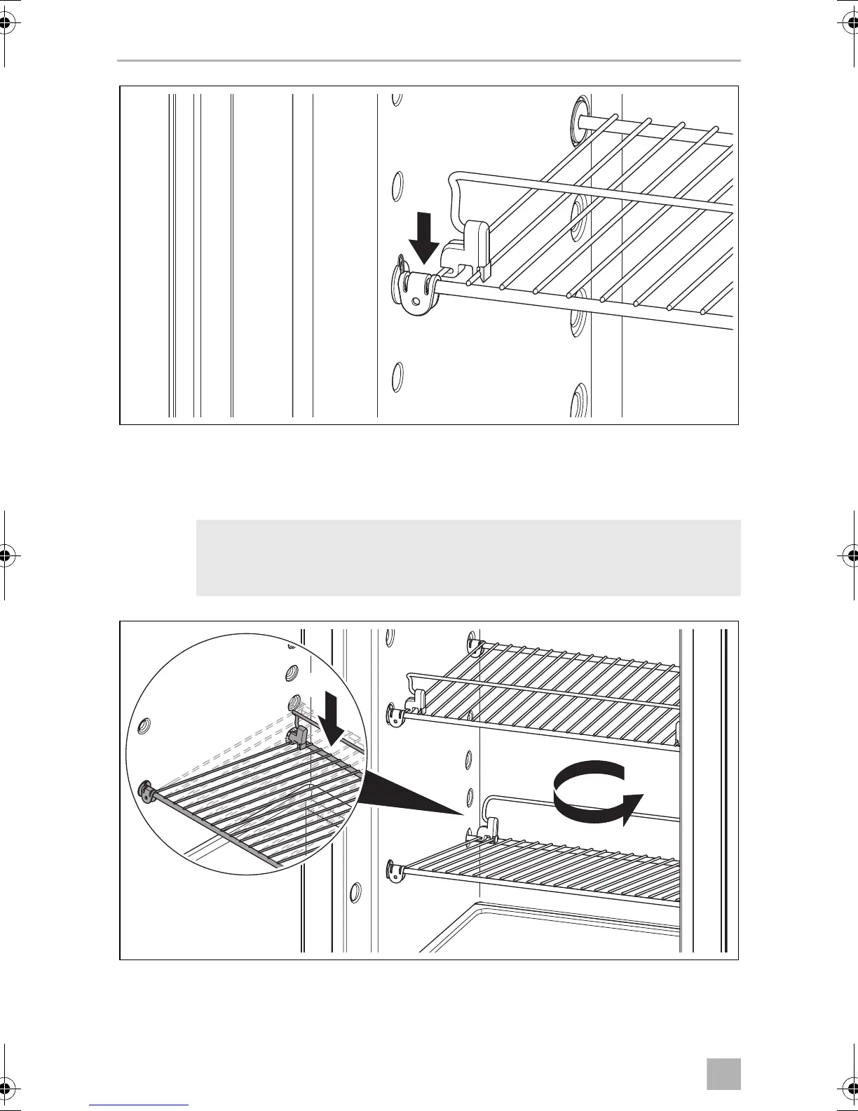 ➤ Remove the shelf and rotate 180 degrees (1.).