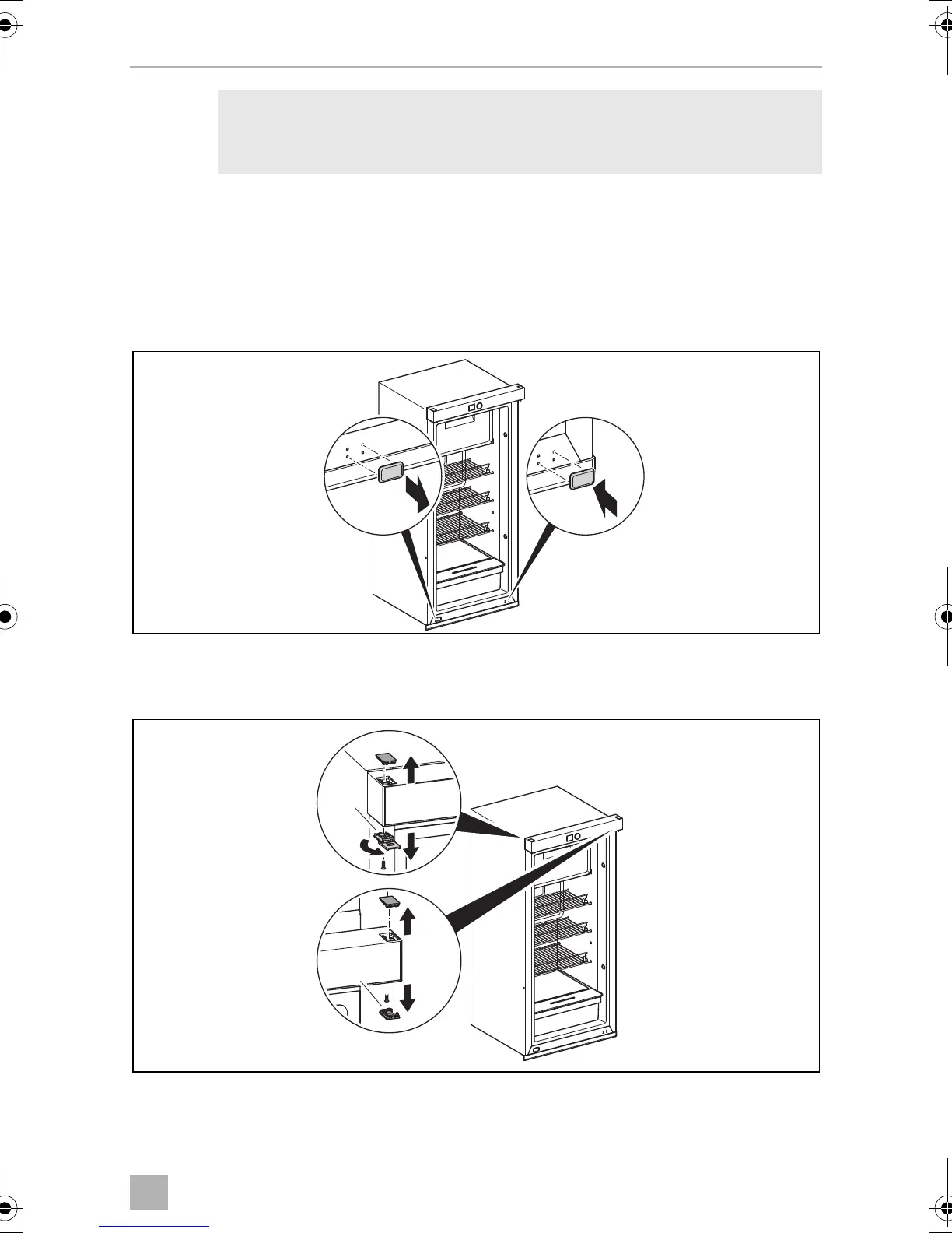 ➤ Place the refrigerator door on soft material in order to prevent scratches.