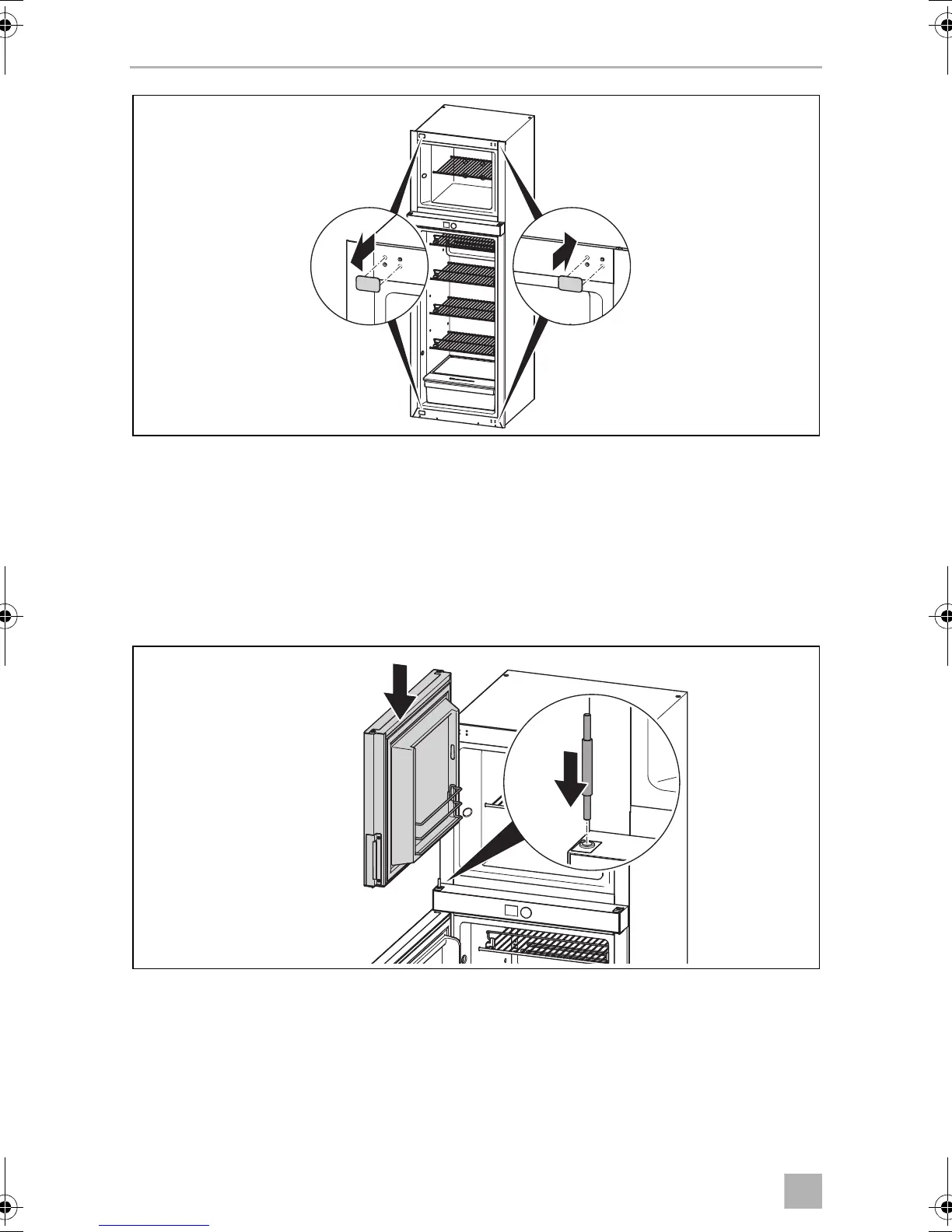 ➤ Position the freezer door on the middle pin (2. in fig. M, page 45).
