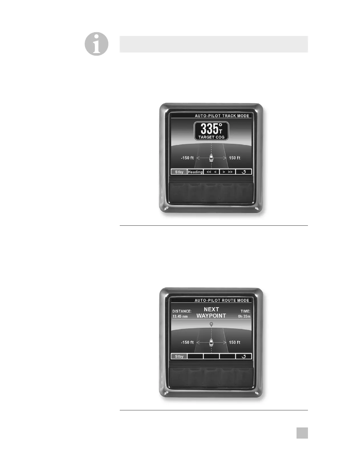 • Boat heading may be changed by the autopilot to hold the
