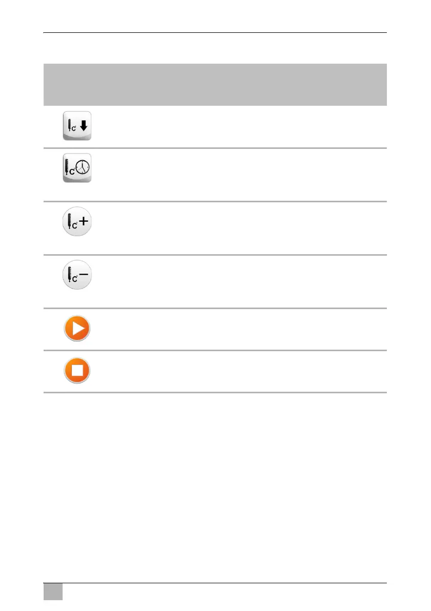 Уменьшает заданное значение температуры для опускания