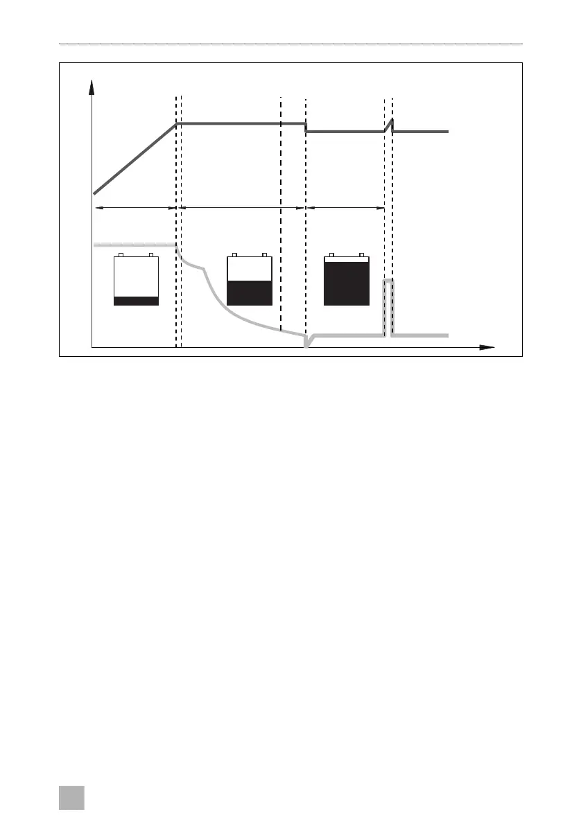 During the 3-step absorption phase (U0 phase) the voltage remains constant (U0).