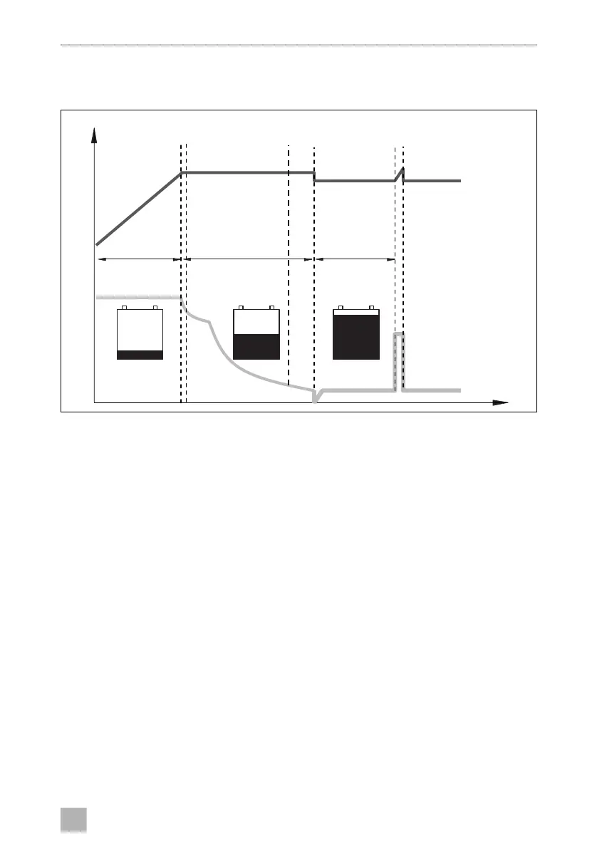 Durante los 3 pasos de la fase de absorción (fase U0), el voltaje se mantiene cons-