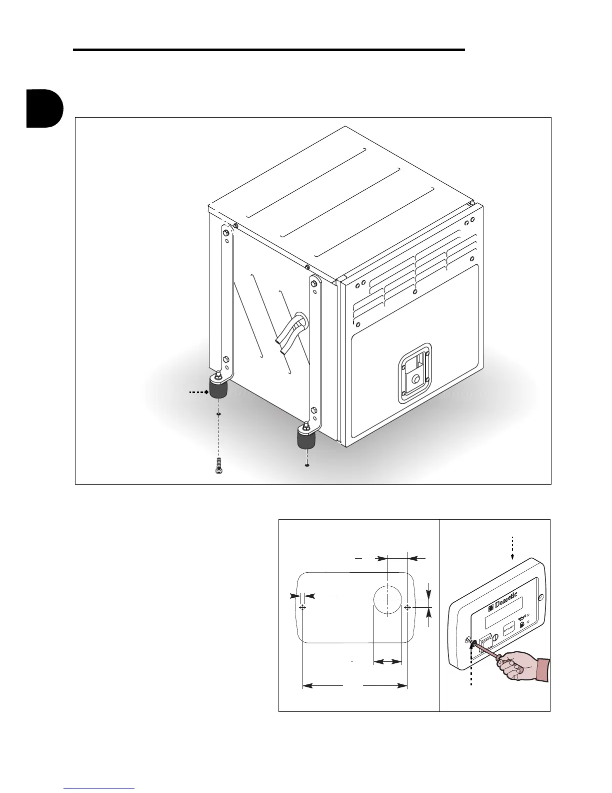 5 -Fasten the equipment to the surface by means of special damping elements (D).