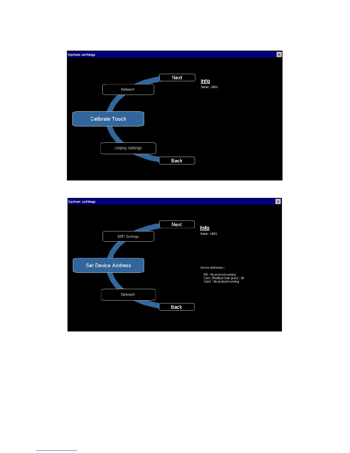 3. Use the Next or Back button to spin the wheel until you find “Set Device Address”.
