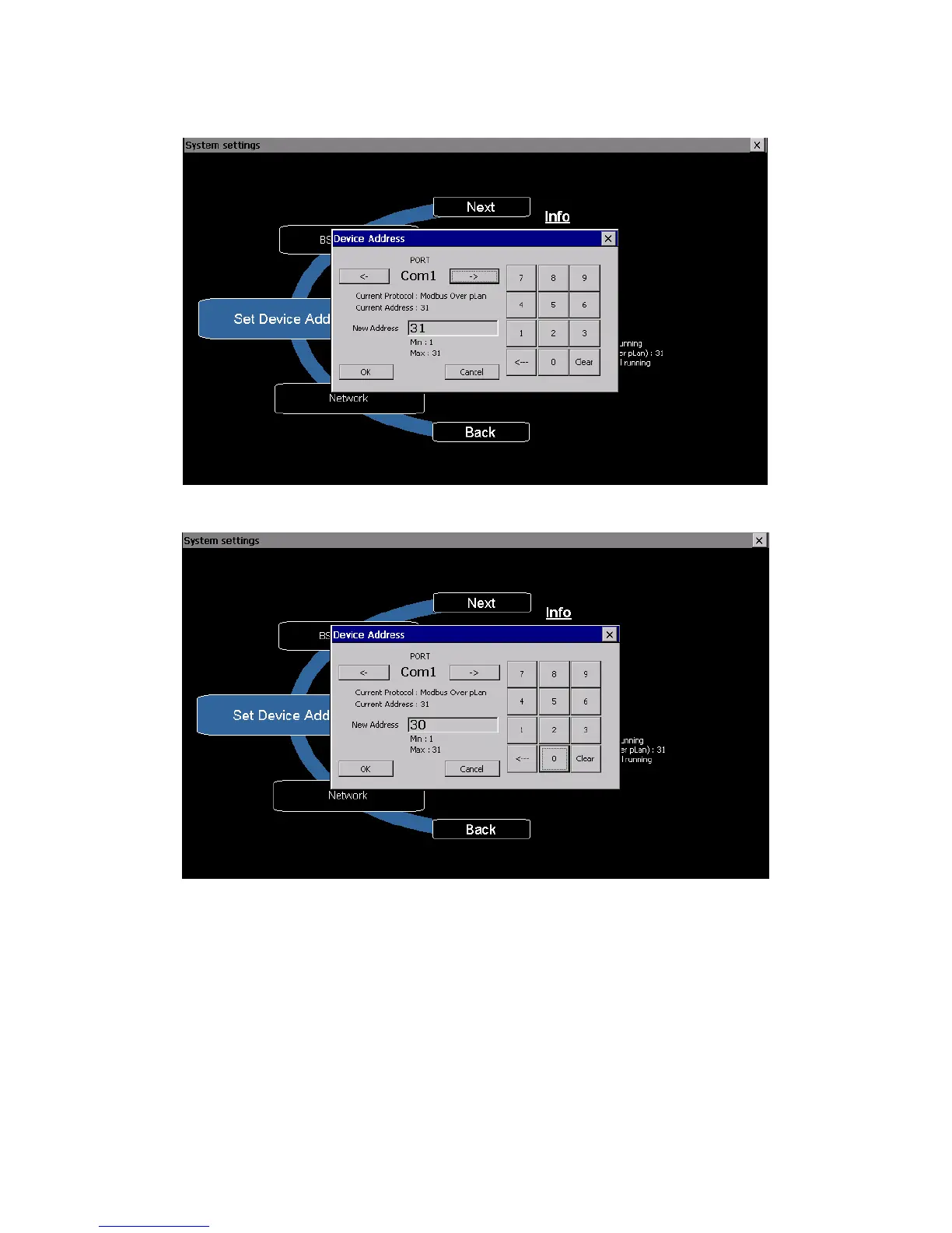 5. Touch the arrow button to select Com1 and change the 31 to 30.
