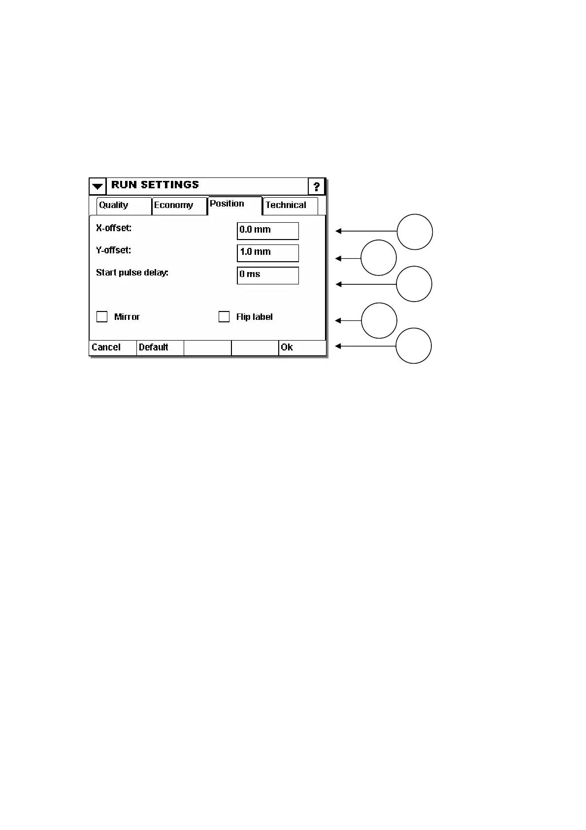 Under the “Position” tab in “RUN SETTINGS” the user can alter th