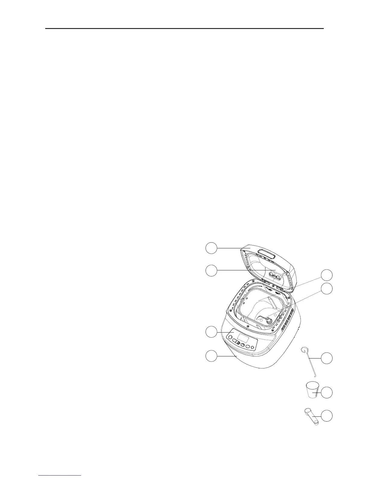 à pain, le moule, le crochet pétrisseur, la cuillère de mesure, le gobelet de mesure,