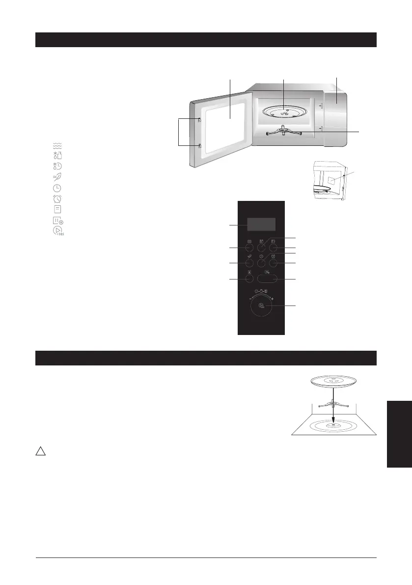 · Veškeré jídlo a nádoby musí být vždy umístěny na otočný skleněný talíř.