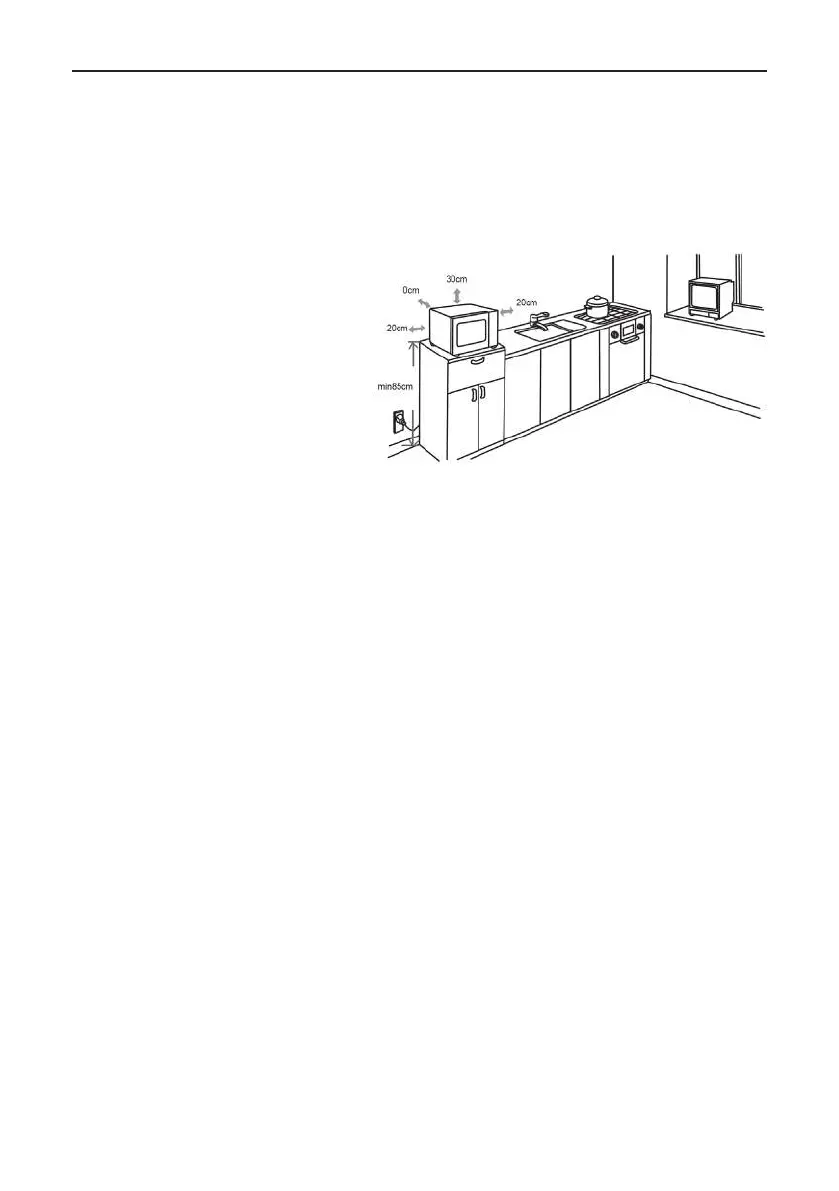 Seite des Geräts muss völlig frei zugänglich sein. Oberhalb der Mikrowelle muss