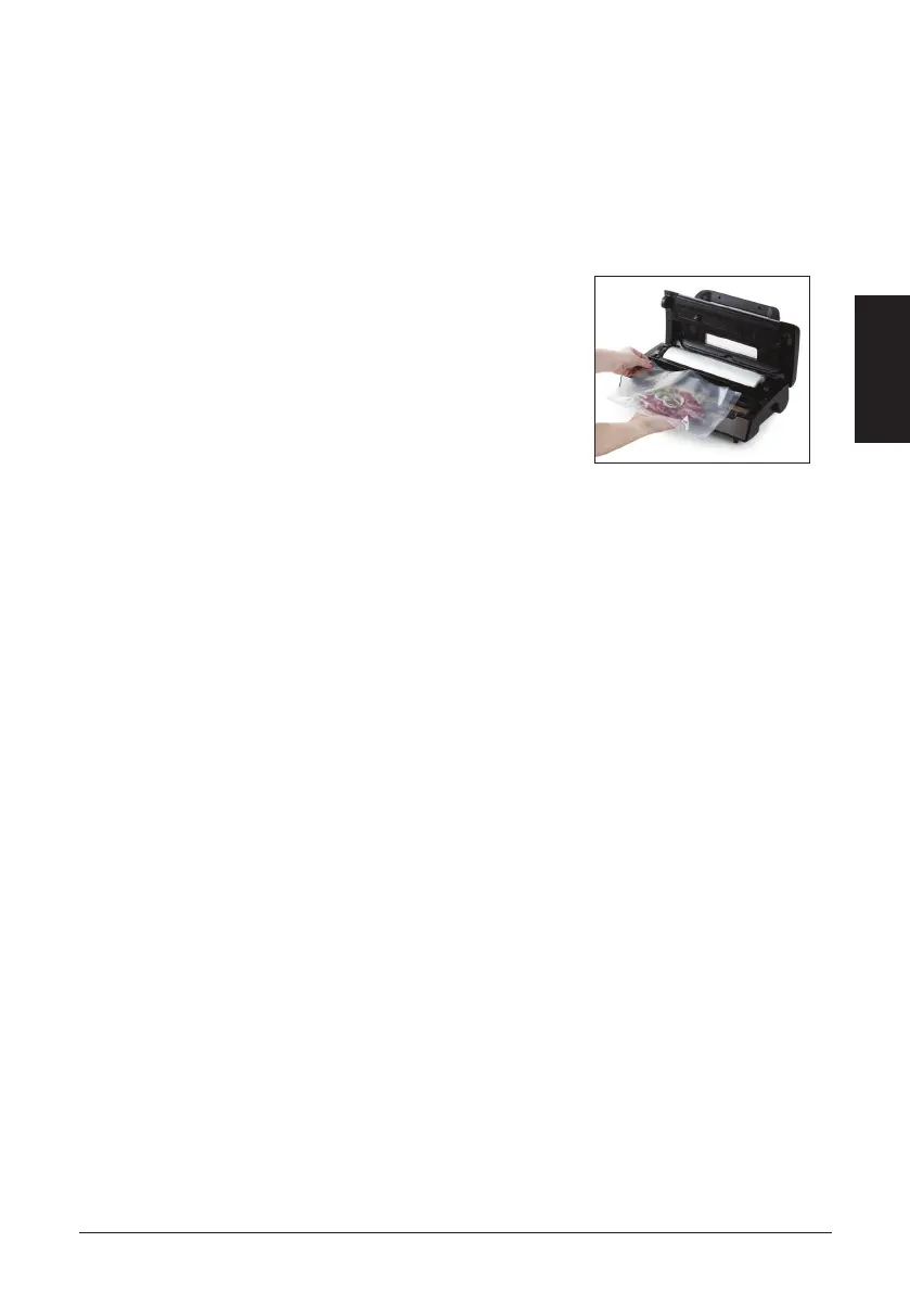 3. Legen Sie den oenen Teil des Beutels in die Vakuumkammer,