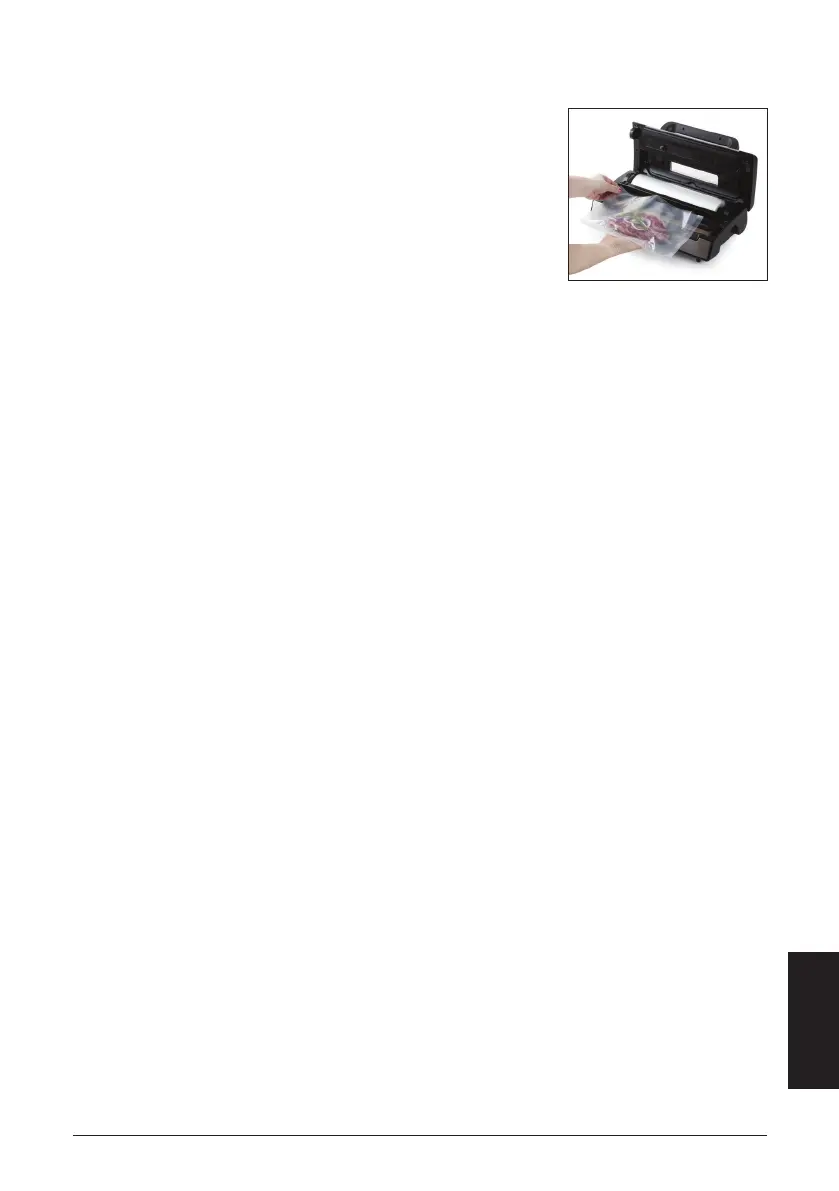 3. Otvorený koniec vrecka položte do prístroja, tak aby bol vo vnútri odsávacie komory.