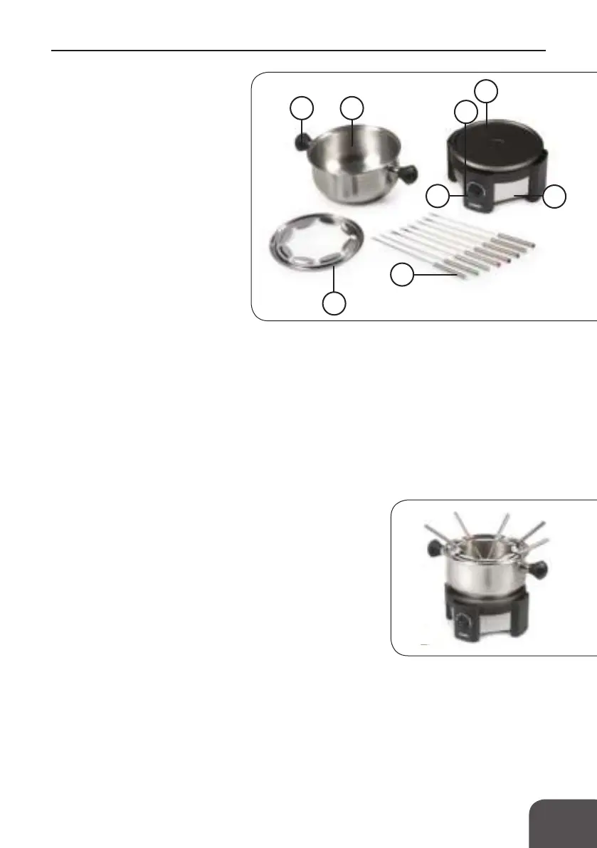 2. Giet de olie in de fonduepot en zorg ervoor dat het olieniveau zich tussen de