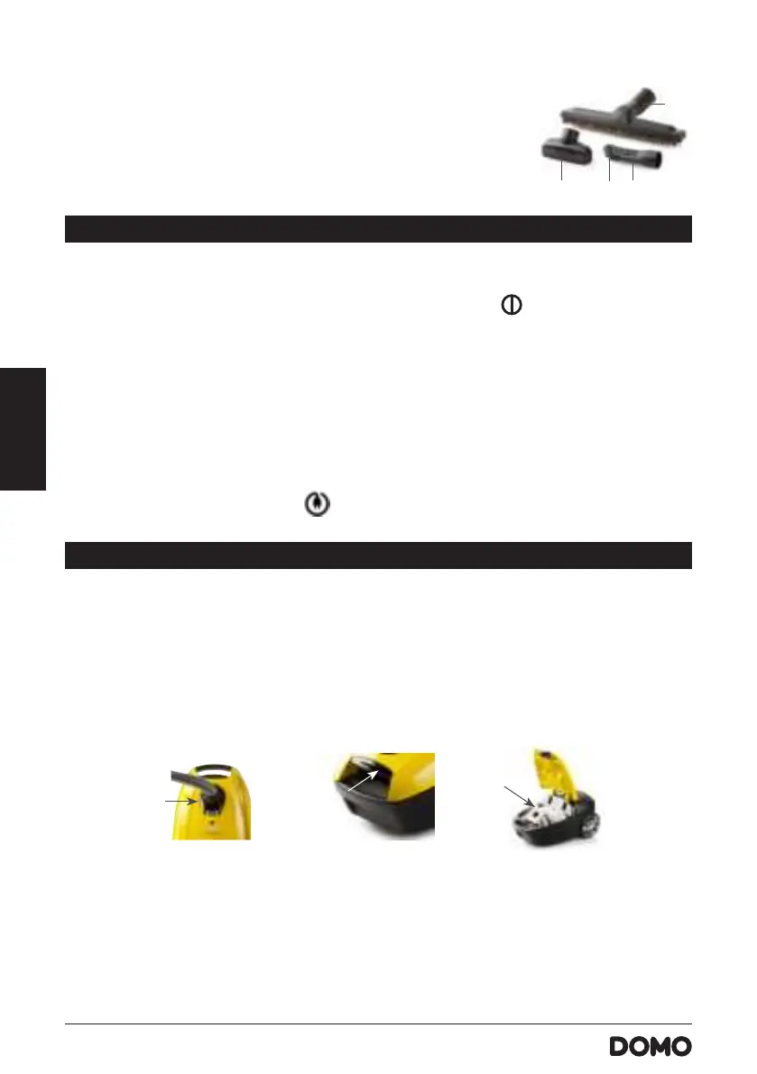 2. To turn the vacuum cleaner on and o, press the foot pedal with the symbol.